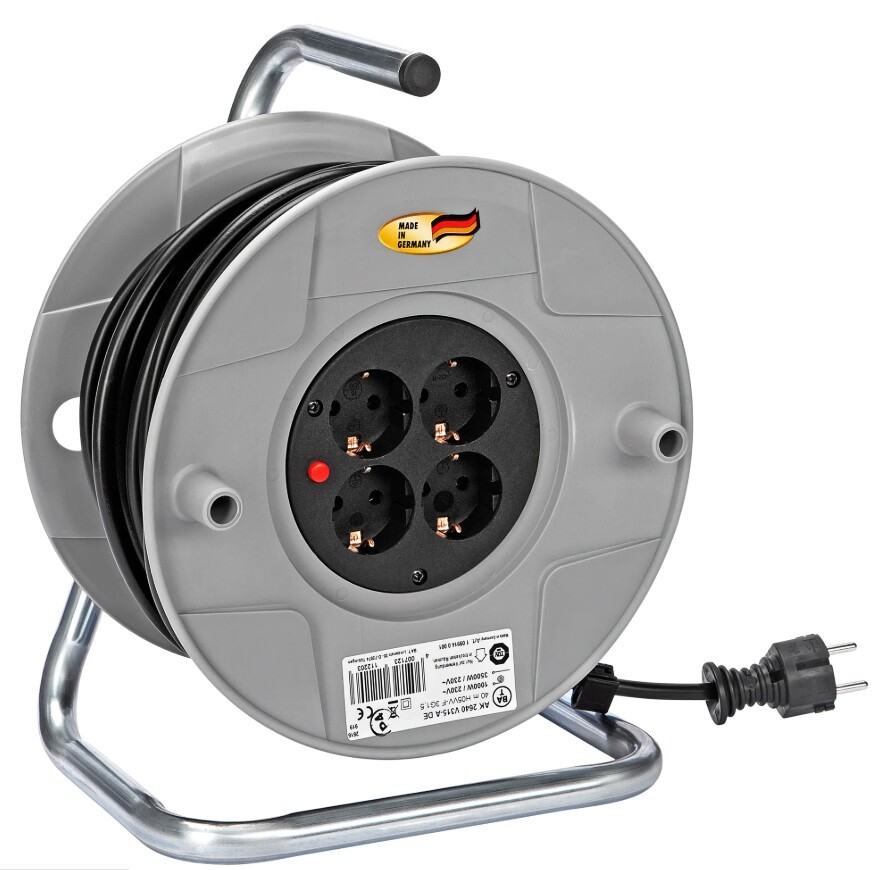 Für Arbeiten in der Garage, im Garten oder auf einem größeren Gelände ist eine Kabeltrommel zur Stromversorgung notwendig. Die praktische Kabeltrommel von Brennenstuhl ist mit einem 40 m langen Kabel ausgestattet. An der Trommel befinden sich vier Steckdosen, die als Anschlüsse für verschiedene Geräte dienen.