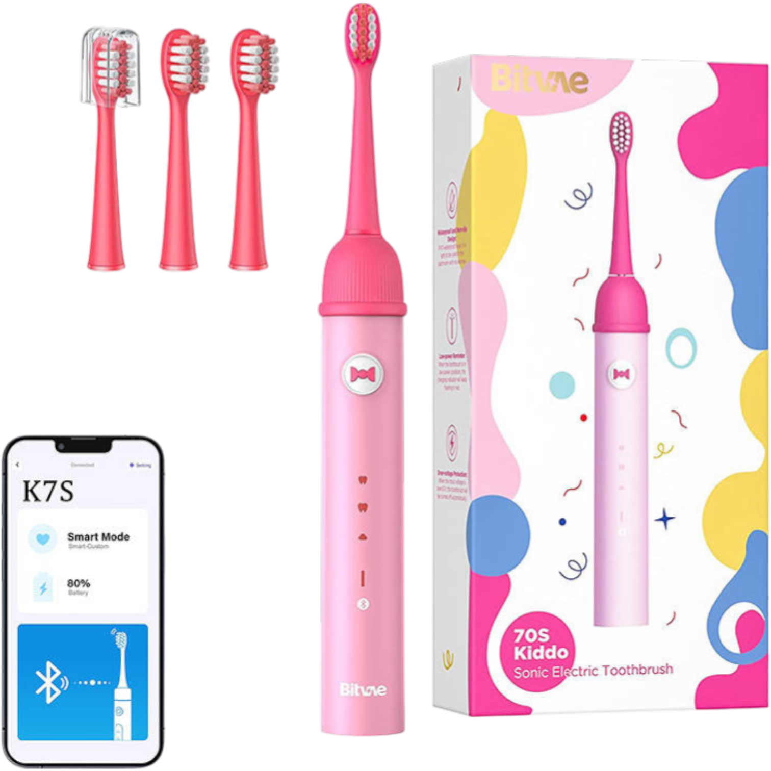Schallzahnbürste für Kinder mit App und Aufsteckset Bitvae K7S (pink).