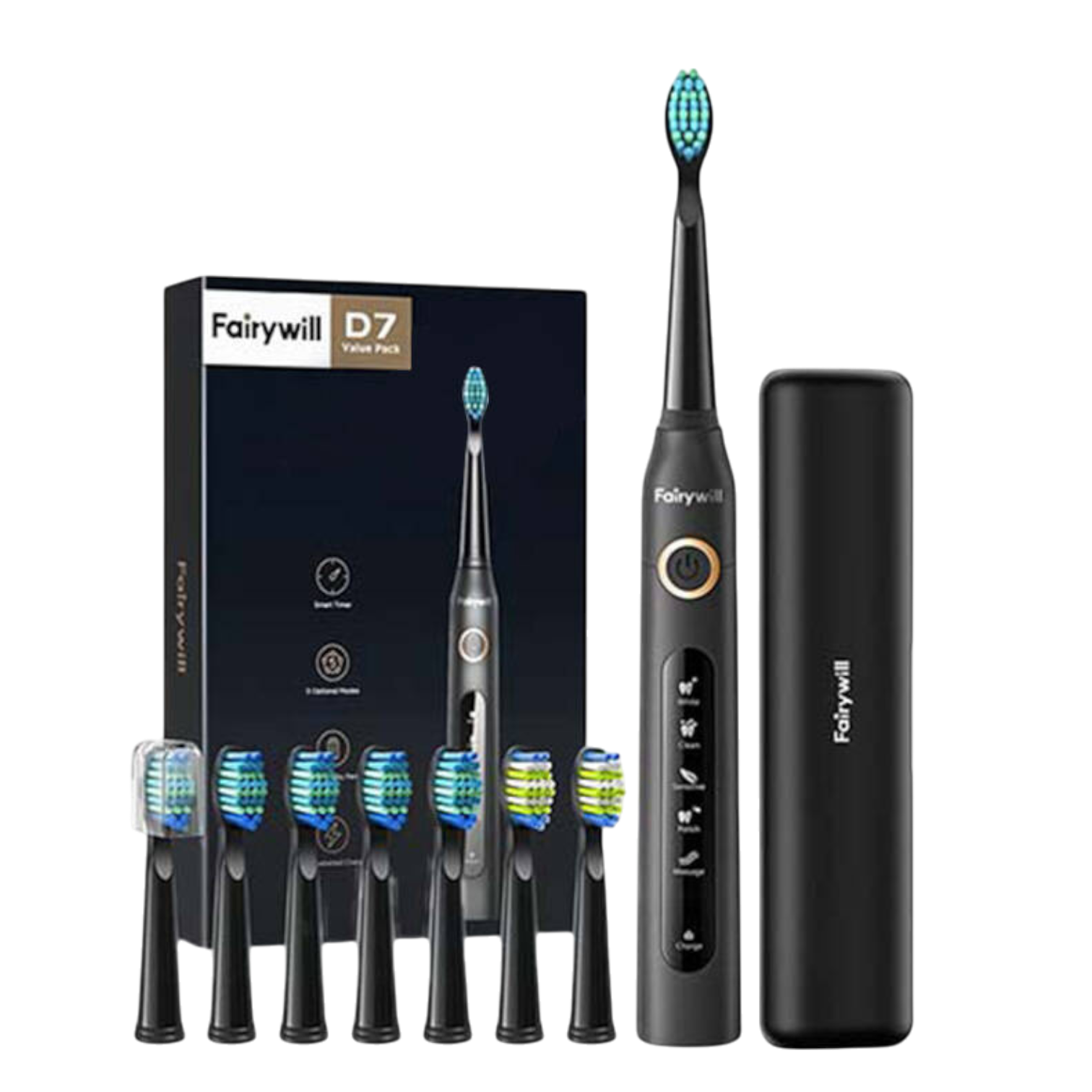Beeindrucken Sie alle mit einem strahlenden Lächeln. Die ADA-zugelassene FairyWill FW507 Plus Schallzahnbürste erzeugt Vibrationen mit bis zu 40.000 pro Minute und bietet 5 Modi zur Auswahl. Außerdem ist sie mit einem intelligenten 2-Minuten-Timer ausgestattet. Der langlebige Akku ermöglicht eine Nutzung von bis zu 30 Tagen mit einer einzigen Ladung. Zum Lieferumfang gehören außerdem austauschbare Aufsätze, eine Schutzhülle und eine Tragetasche.