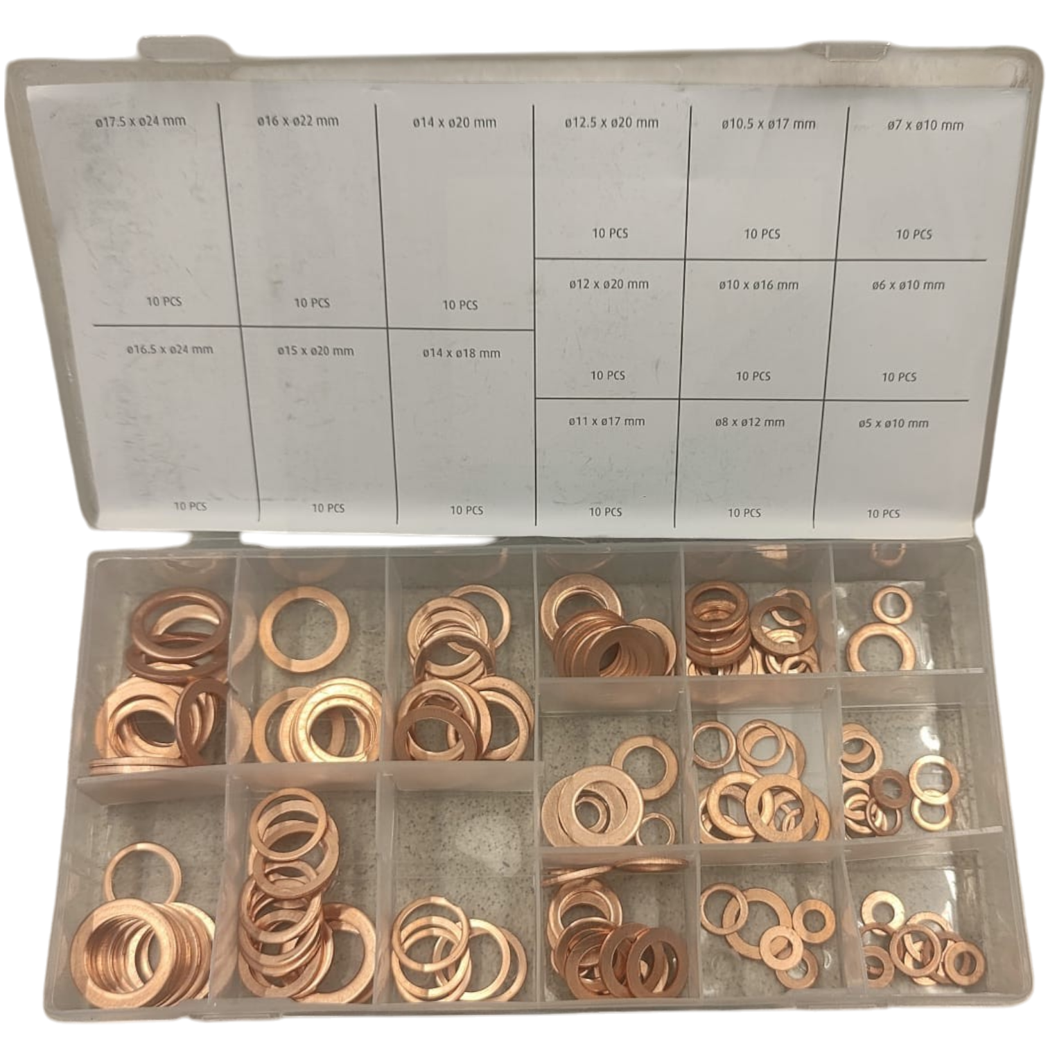 SONIC Ölwannen-Ablassschrauben-Unterlegscheibensatz (15 Typen / 150 Stück) Kupfer-Unterlegscheibensatz