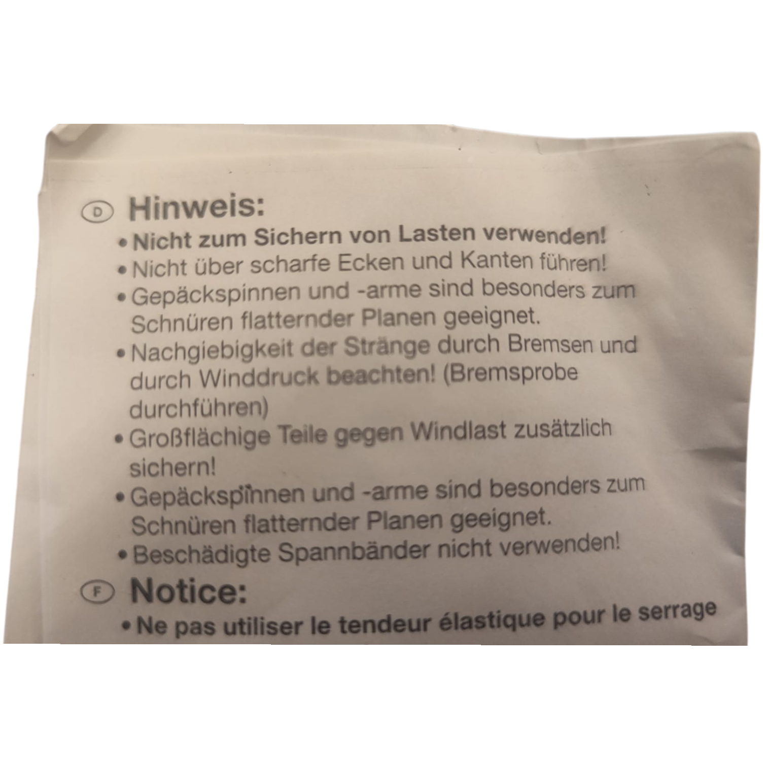 Die Spanngummis helfen dir, deine Sachen während der Fahrt sicher zu transportieren und verhindern, dass Gegenstände vom Gepäckträger rutschen oder herunterfallen.