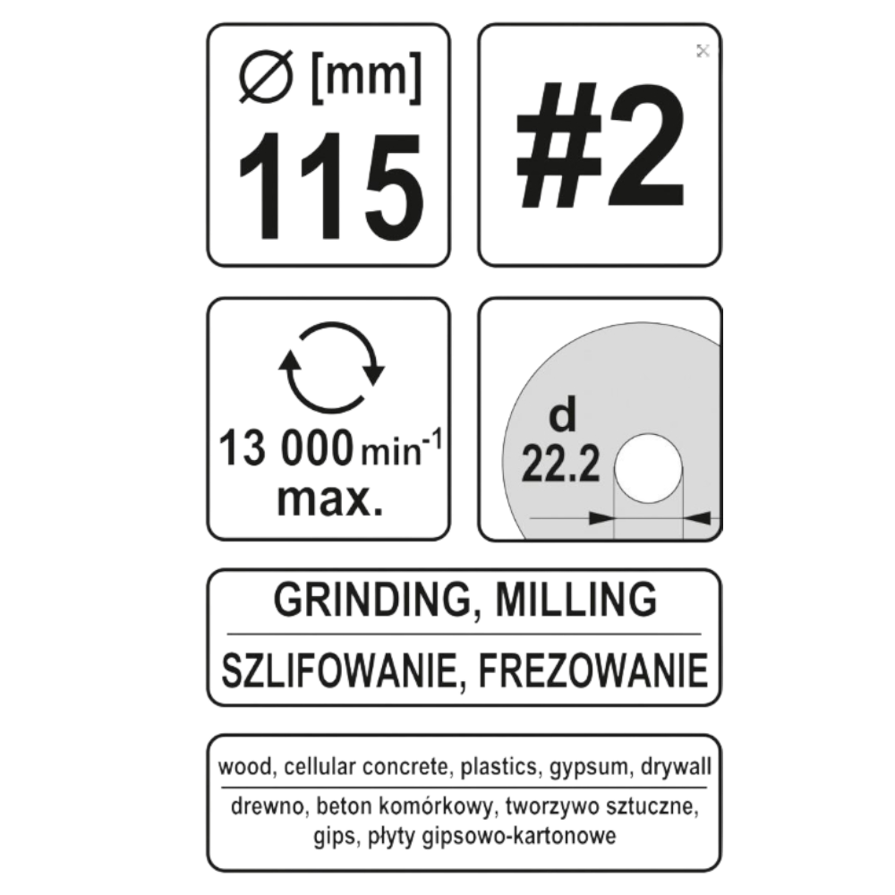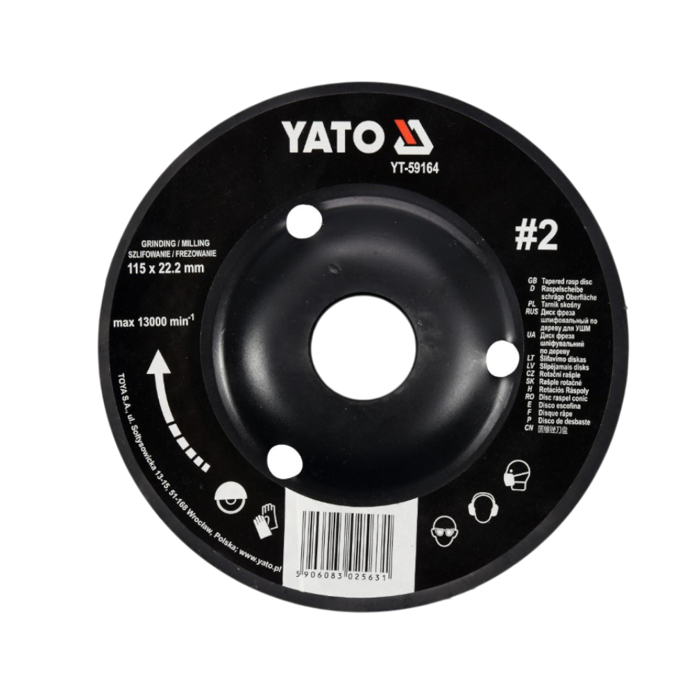 Die YATO YT-59164 ist eine schräge Schleifscheibe (Holz-Himbeere) mit einem Durchmesser von 115 mm und einer Bohrung von 22,2 mm. Sie ist für den Einsatz auf Winkelschleifern geeignet und ermöglicht eine Vielzahl von Arbeiten wie Fräsen, Schleifen, künstlerische Bearbeitung (z. B. Bildhauerei), das Entfernen alter Schutzschichten sowie das Brechen von Kanten und Reinigen großer Flächen.