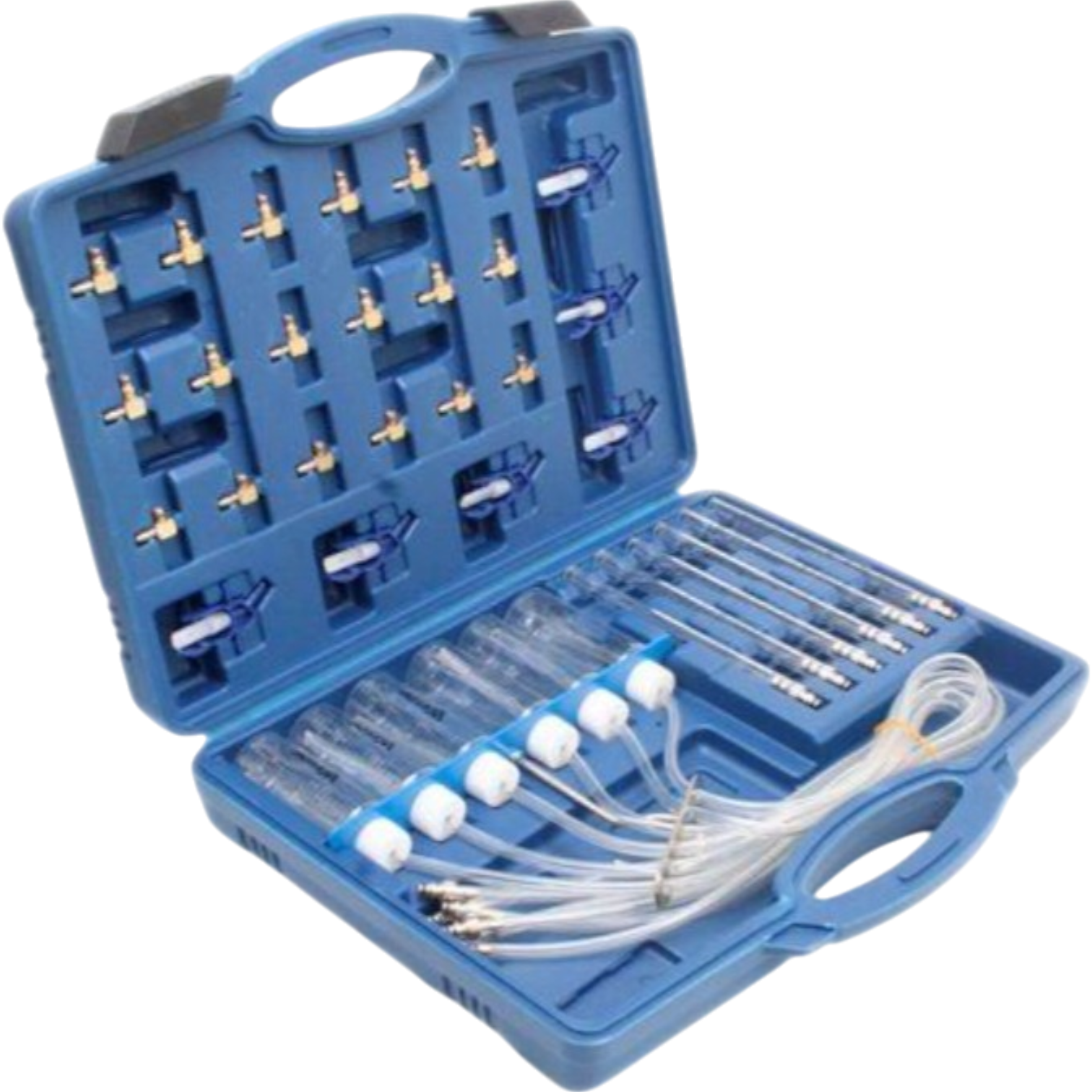 Überlaufdiagnosesatz im praktischen Koffer. Für bis zu 6 Injektoren.
