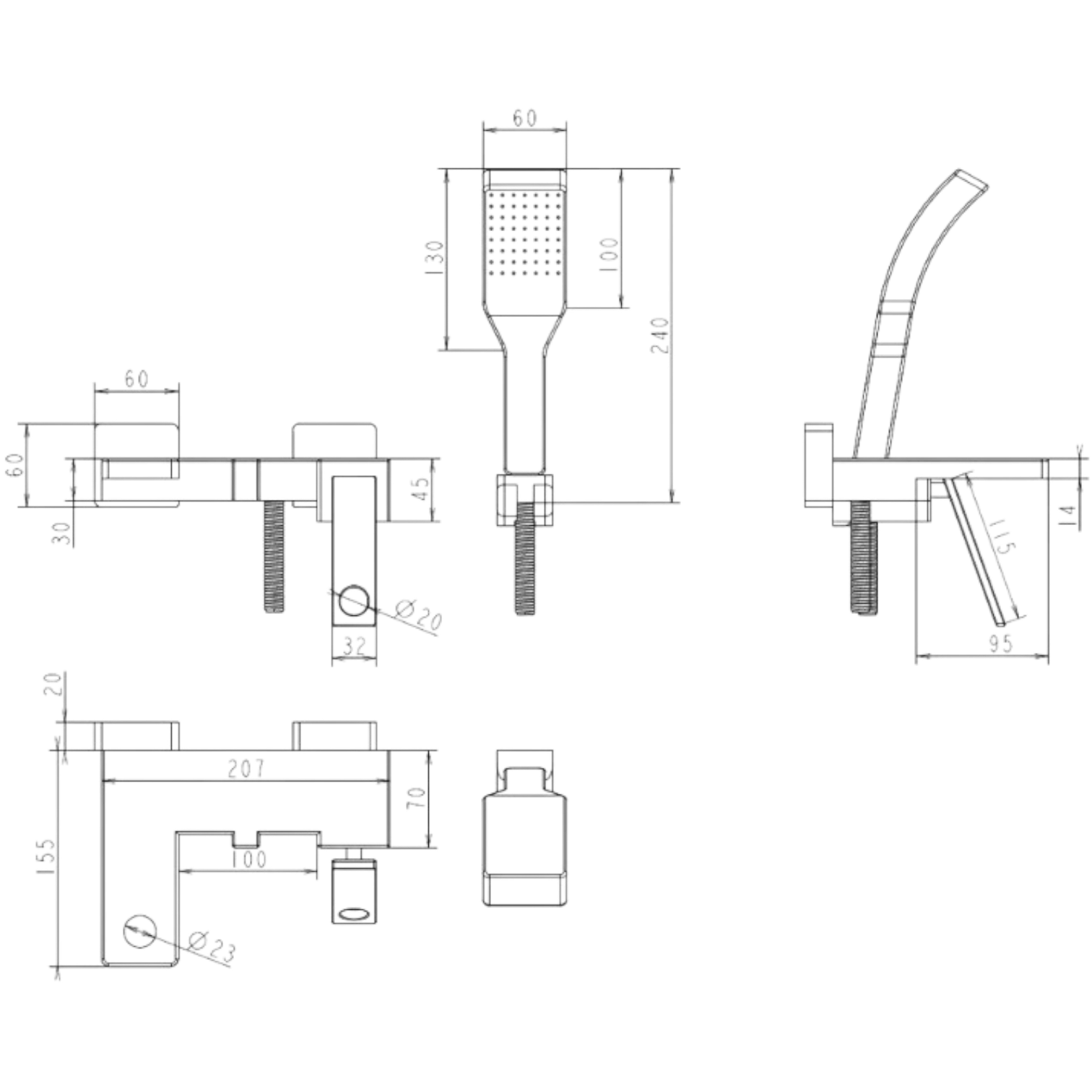 Fala Badewannenarmatur Schwarz Matt Duschset Wasserhahn Brause Mischbatterie