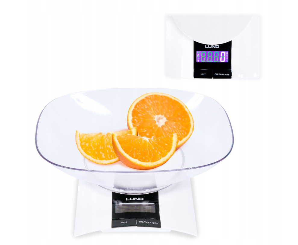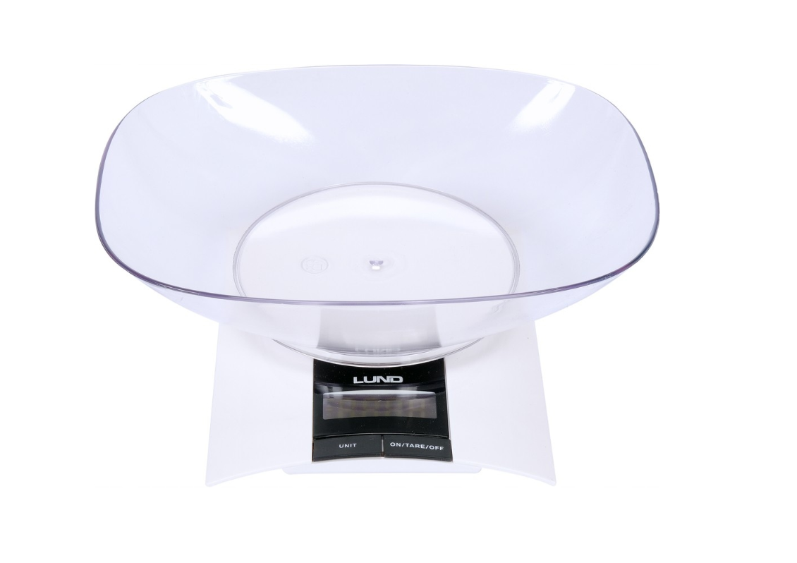 LUND Küchenwaage mit einer Schüssel mit einem Gesamtvolumen von 1000 ml und einer maximalen Beladung von 3000 g .