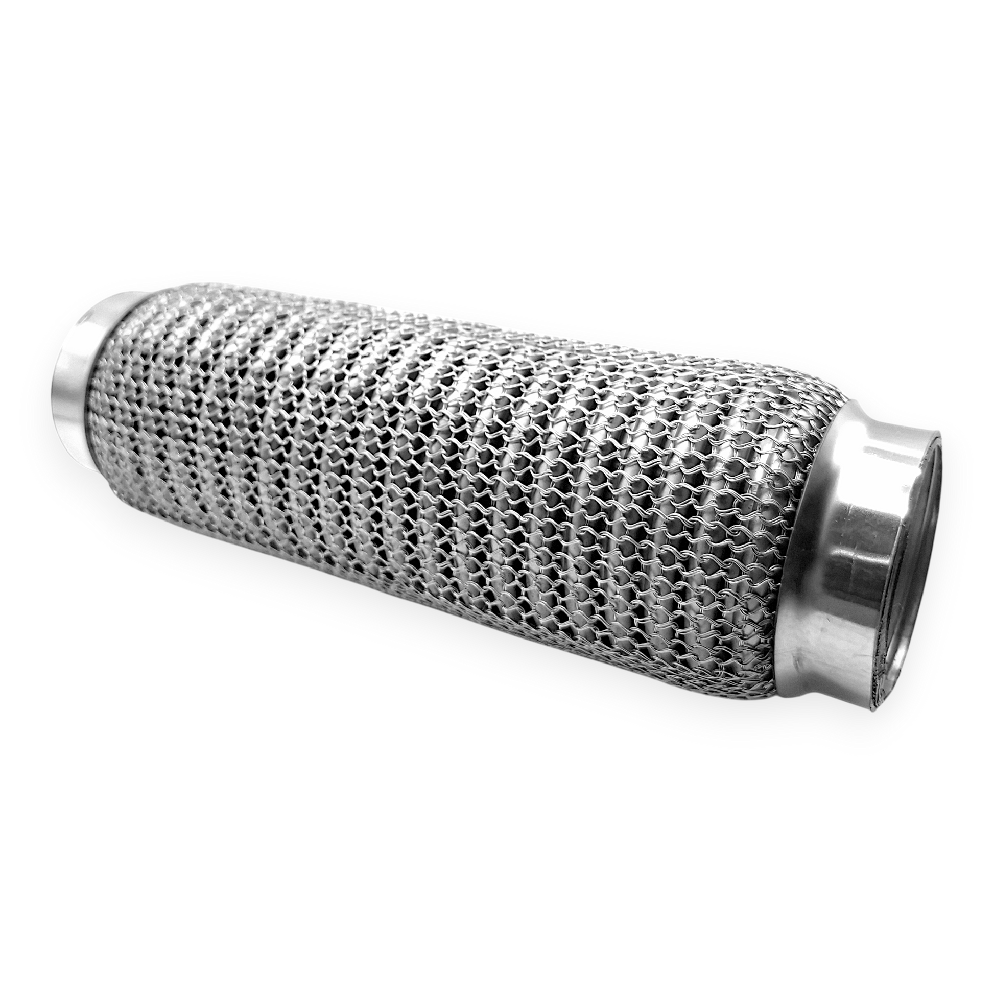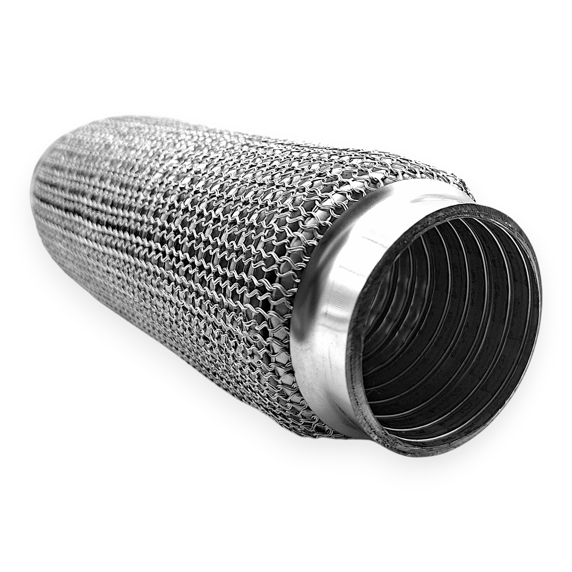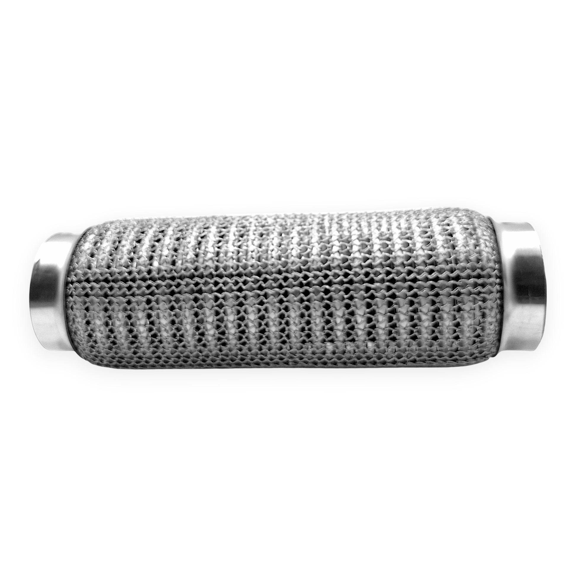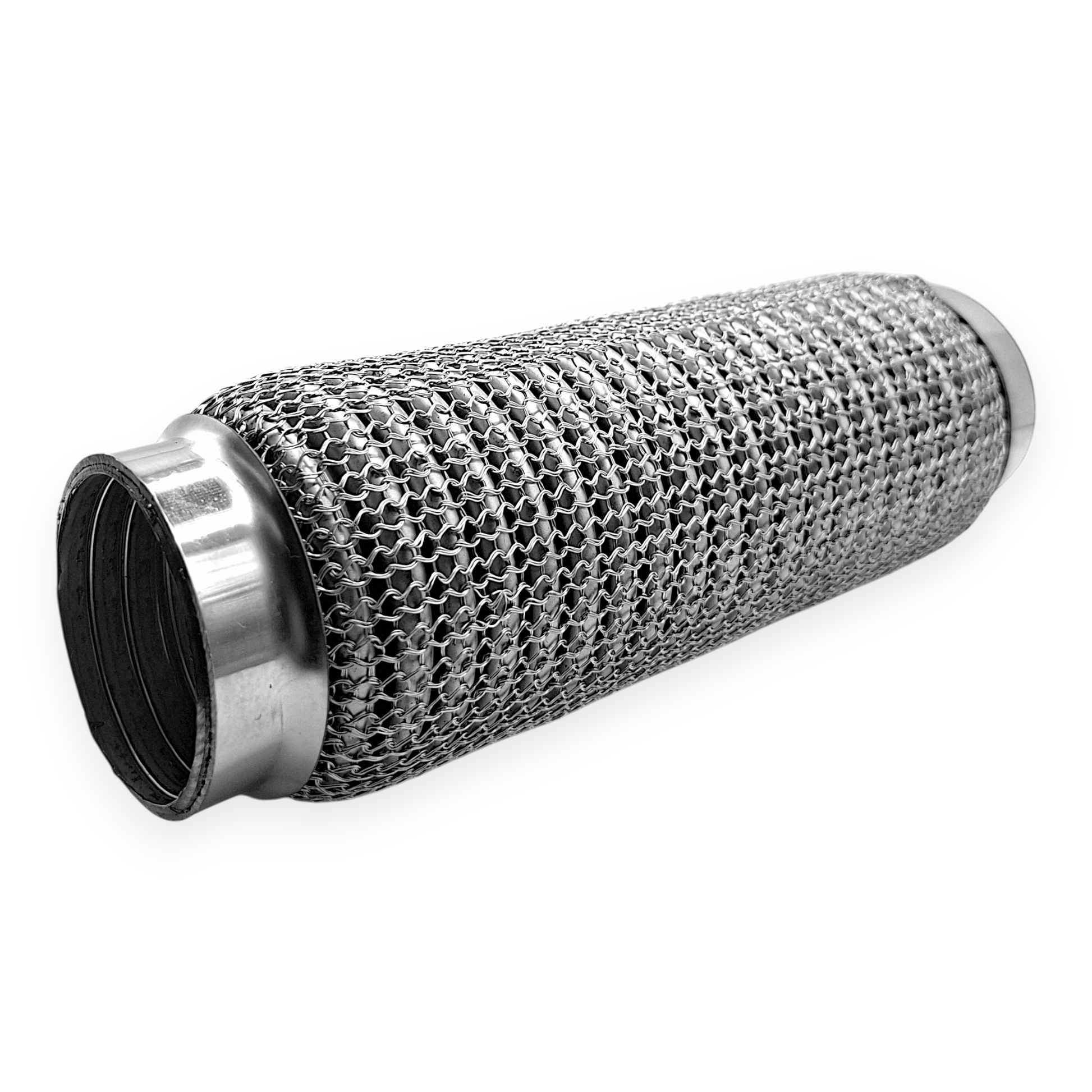 Gefertigt ist das Flexstück aus einem Edelstahl-Wellrohraufbau mit Anschlusskappen aus Stahllegierung. Edelstahl bietet eine gute Beständigkeit gegenüber Korrosion und Hitzeeinwirkung, während die Kappen aus legiertem Stahl stabile Übergangsbereiche für Schweißverbindungen bilden. Die Kombination der Materialien sowie die mehrlagige Bauart entsprechen einer üblichen Bauweise für flexible Verbindungsstücke im Abgasbereich und sind für typische thermische und mechanische Beanspruchungen ausgelegt.