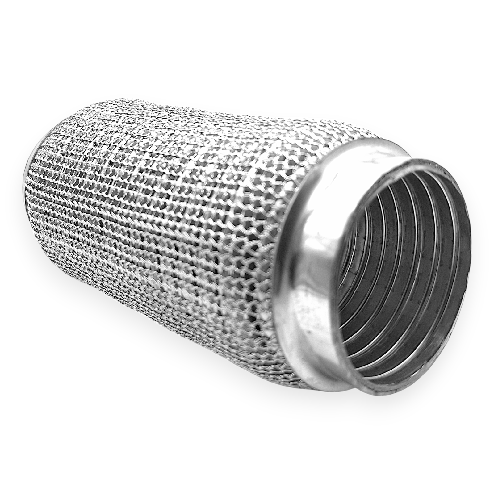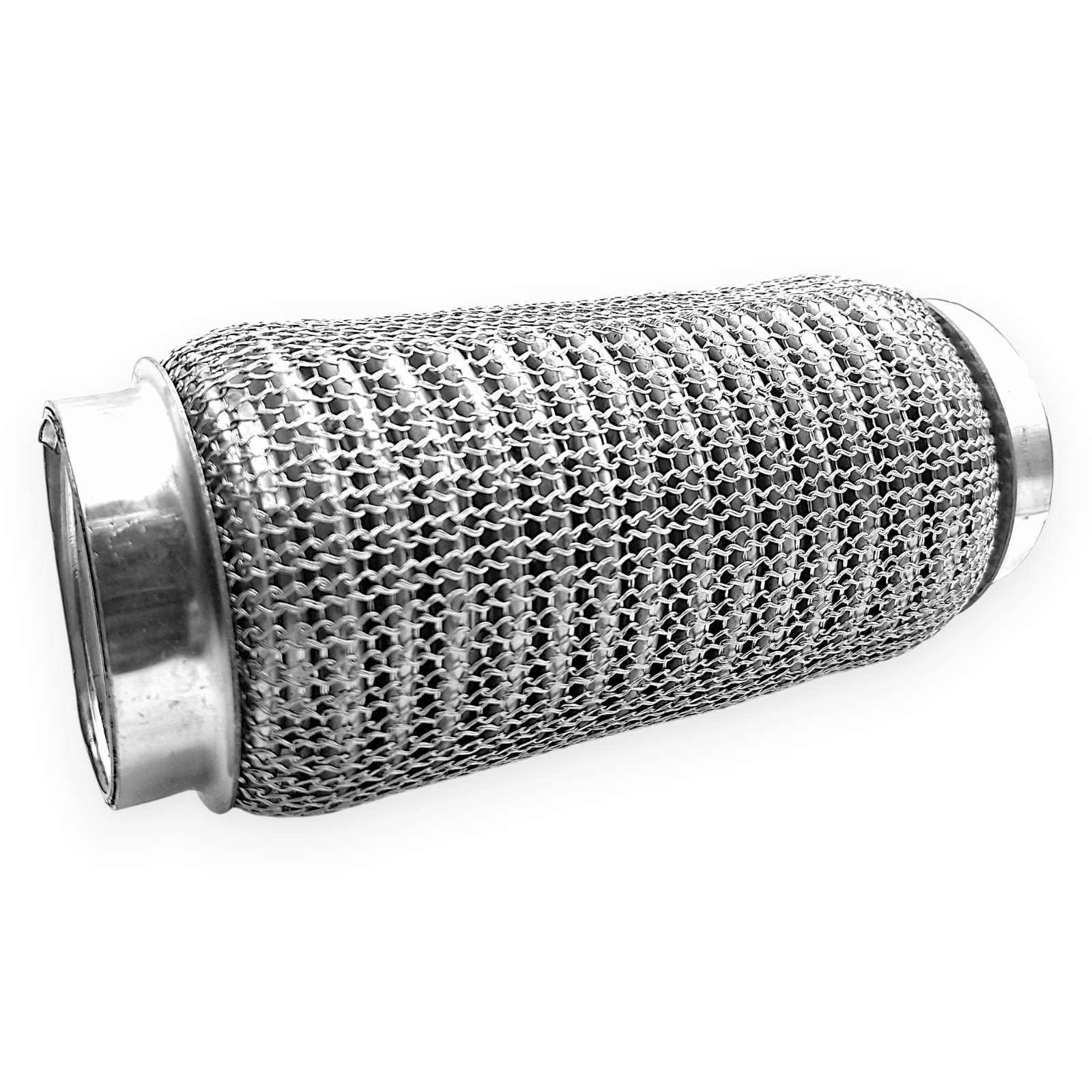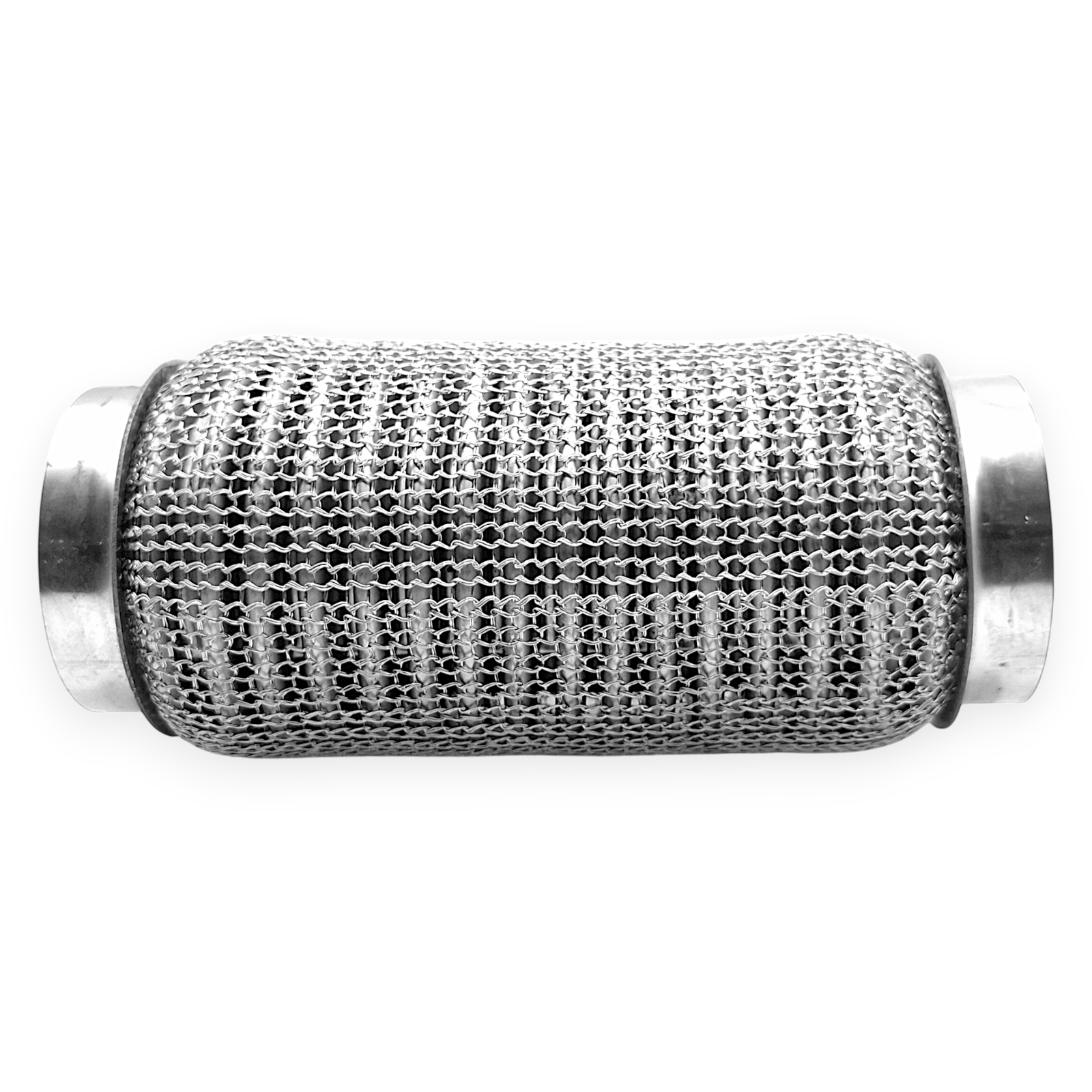 Gefertigt ist das Flexstück aus einem Edelstahl-Wellrohraufbau mit Anschlusskappen aus Stahllegierung. Edelstahl bietet eine gute Beständigkeit gegenüber Korrosion und Hitzeeinwirkung, während die Kappen aus legiertem Stahl stabile Übergangsbereiche für Schweißverbindungen bilden. Die Kombination der Materialien sowie die mehrlagige Bauart entsprechen einer üblichen Bauweise für flexible Verbindungsstücke im Abgasbereich und sind für typische thermische und mechanische Beanspruchungen ausgelegt.