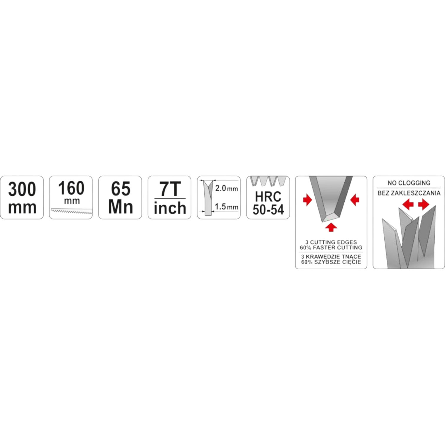 - die Sägezähne mit speziellem Dreikantprofil sind für aggressives Schneiden in beide Richtungen ausgelegt