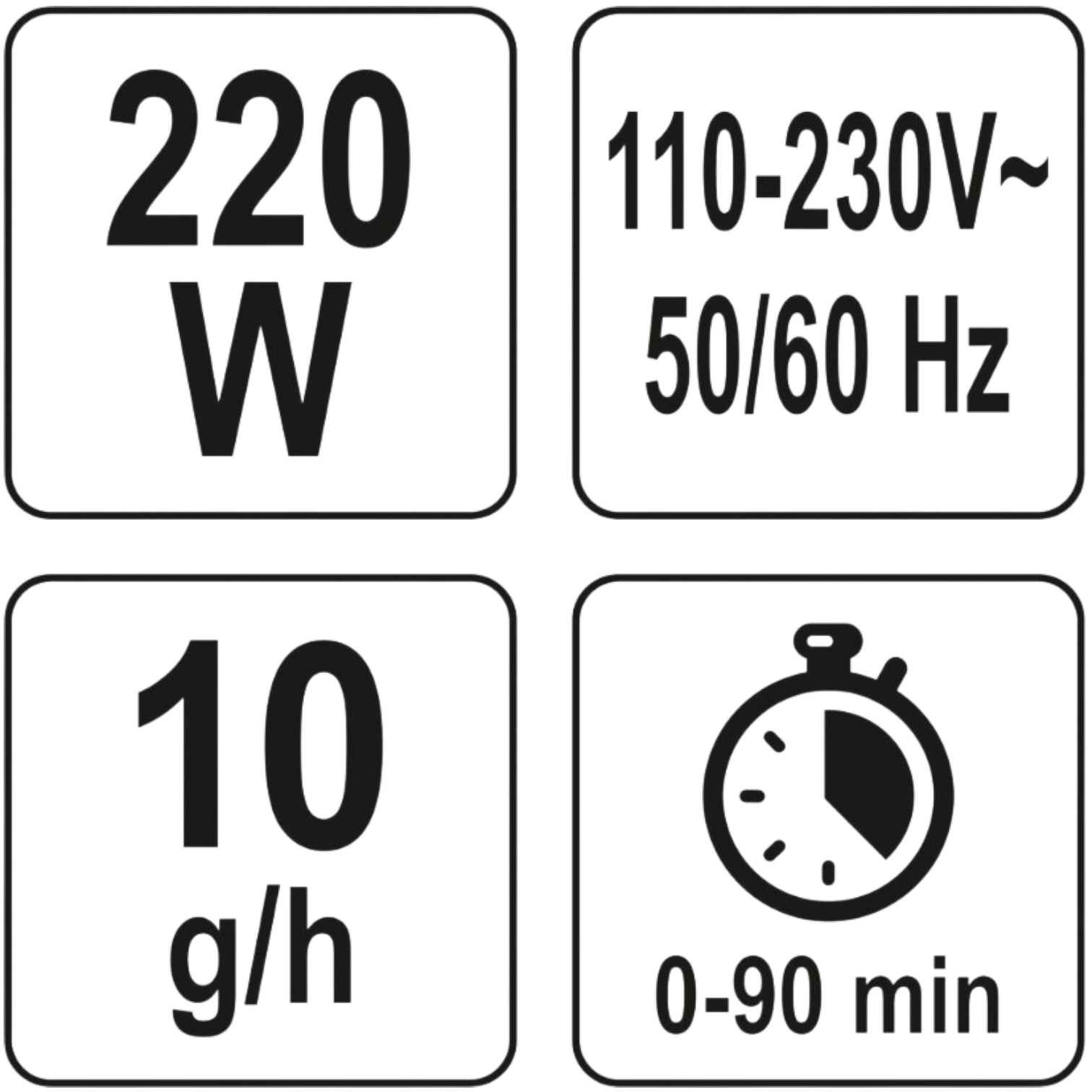 - eingebauter Timer: 0 - 90 Minuten
