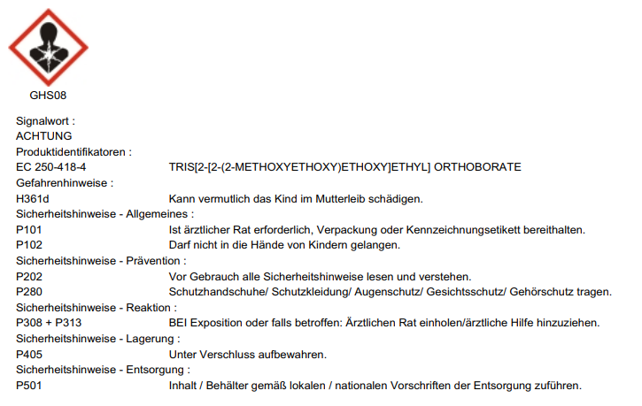 WARNUNG: Nicht mischbar mit Bremsflüssigkeiten auf Silikonbasis (DOT 5)