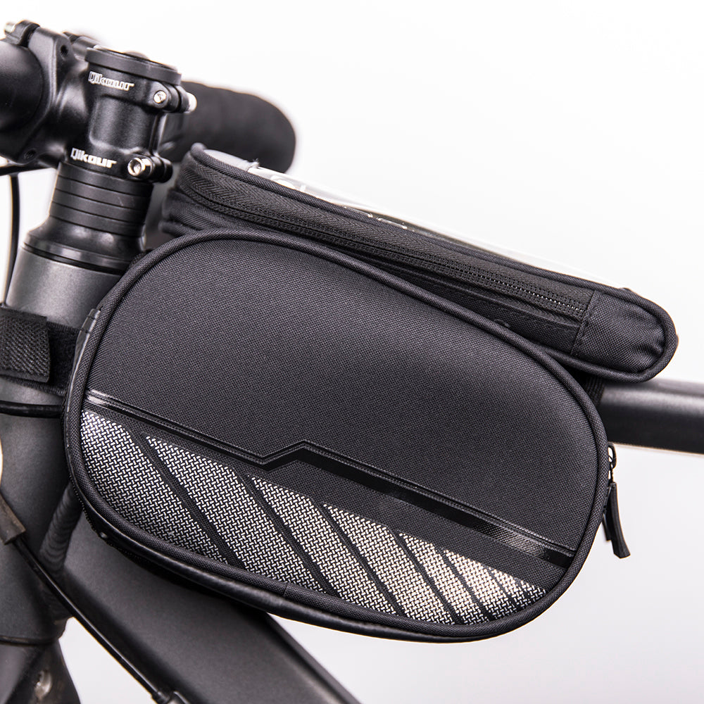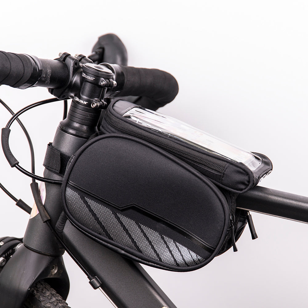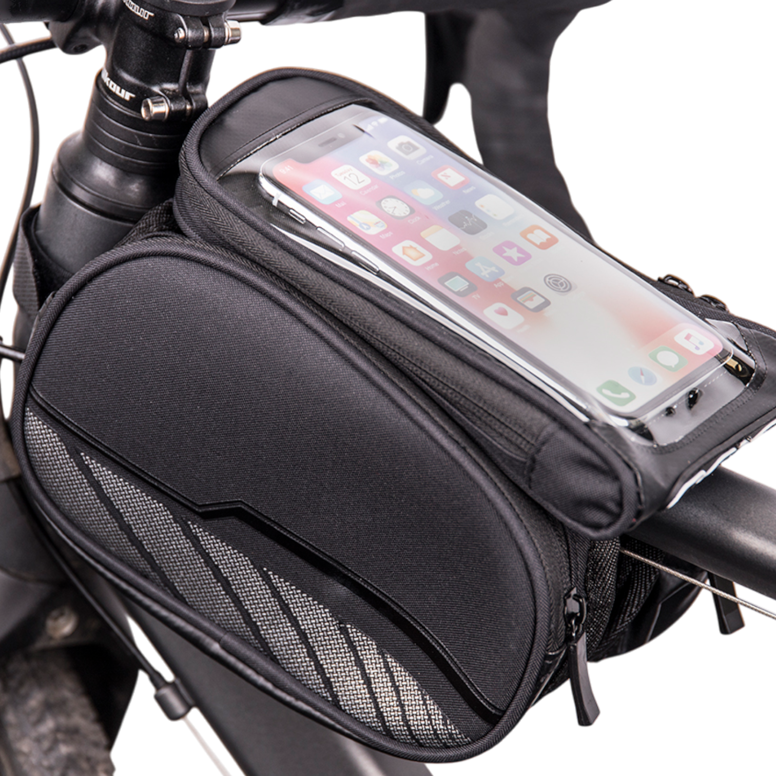 Wasserdichte Fahrradrahmentasche Schwarz mit Handyhülle Touchfolie Reflektoren