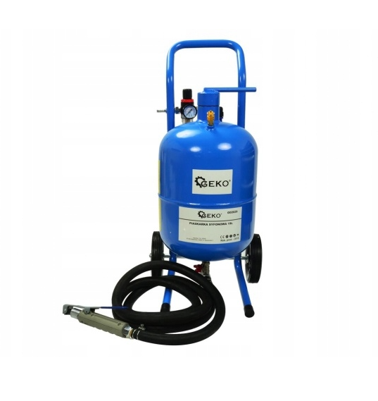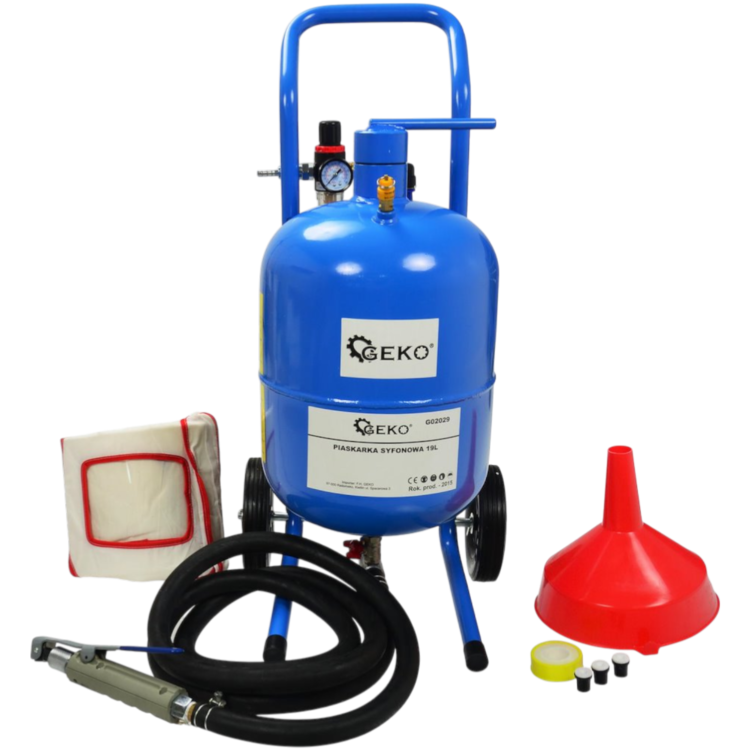 Das mobile Sandstrahlgerät GEKO G02029 mit 19 l Fassungsvermögen ist für vielseitige Reinigungs- und Entrostungsarbeiten konzipiert. Es eignet sich gut für kleinere Projekte im Garten, an Fahrzeugen oder in der Werkstatt. Mit einem regelbaren Betriebsdruck von 4,1 bis 8 bar (entspricht ca. 60–125 psi) und einem Luftverbrauch von 6–25 l/min ist das Gerät leistungsfähig bei gleichzeitig effizientem Einsatz von Druckluft. Die Technik basiert auf einem Syphonsystem, das laut Hersteller eine rund 30 % höhere Effizienz im Vergleich zu herkömmlichen Saugstrahlgeräten bietet.