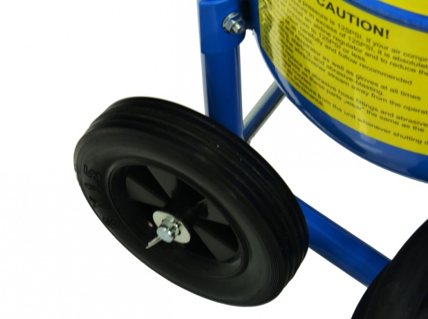 Dank der Schutzmaske mit integrierter Sichtplatte ist ein sicherer Einsatz möglich. Die Lieferung umfasst zudem vier verschiedene Düsen, eine Pistole, einen Wasserabscheider und weiteres Zubehör. Das Gerät ist mobil durch Gummiräder und eignet sich sowohl für Heimwerker als auch für Werkstätten.
