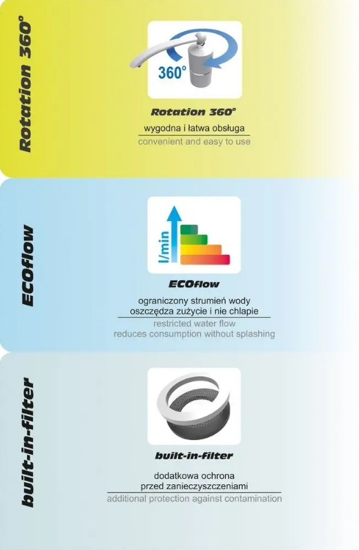 • bequeme Wassertemperatureinstellung über den Heizungsgriff