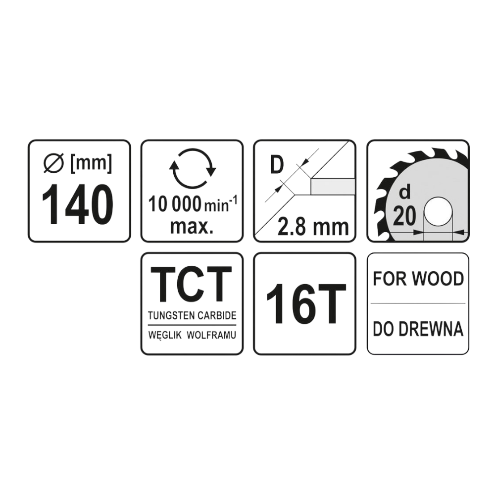 Die YATO WIDIA-Scheibe YT-6052 ist ein 140 mm großes Hartmetall-Sägeblatt mit 16 Zähnen für präzise Quer-, Längs- und Winkelschnitte. Sie eignet sich für Holz, Holzwerkstoffe und Kunststoffe. Die mit Wolframkarbid bestückten Zähne ermöglichen saubere Schnitte bei hoher Belastbarkeit.