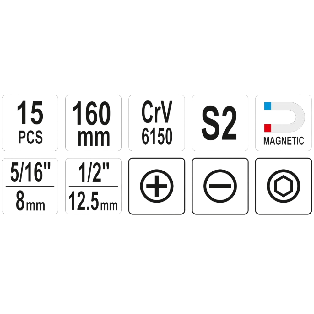 Schlagschrauber 5/16" Bit-Sortiment Kreuz Schlitz HEX Ausdreher 1/2" Satz 15-tlg