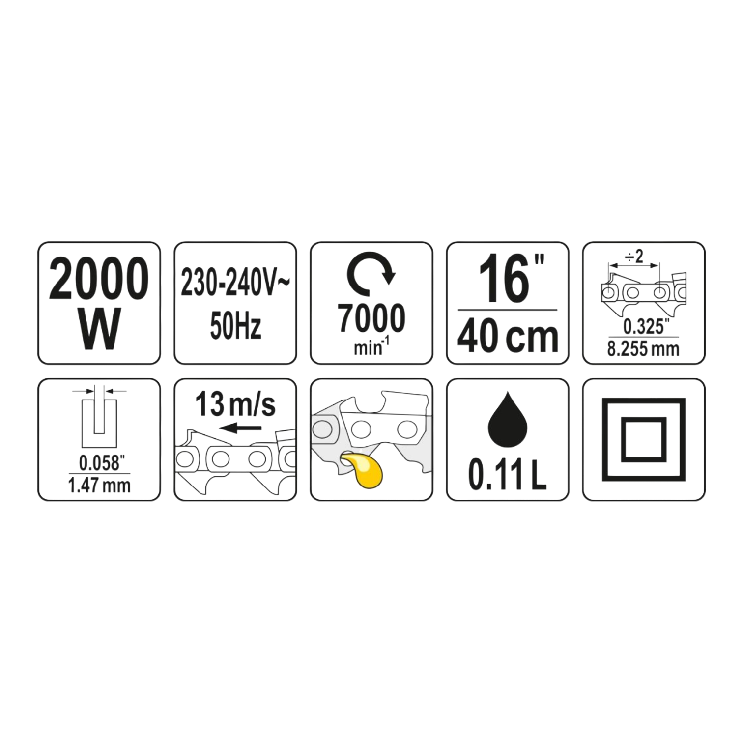 YATO Elektro Kettensäge 2000W Schwertlänge 40cm 16" Elektrische Motorsäge E-Säge