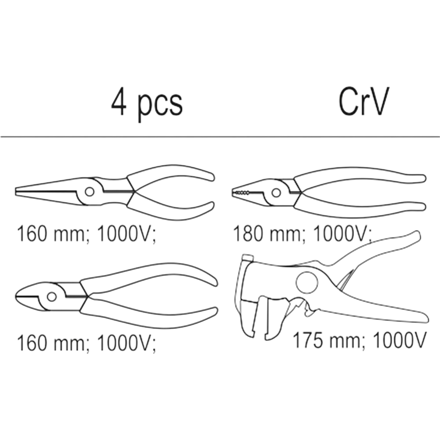 Elektro Zangen Set 4tlg VDE Seitenschneider Kombizange Spitzzange Abisolierer