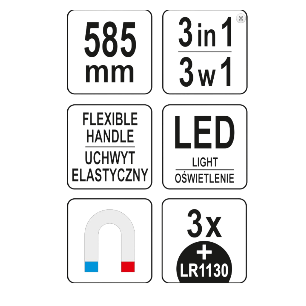 - 3-in-1-Funktion: mechanischer Greifer, Magnet, LED-Leuchte