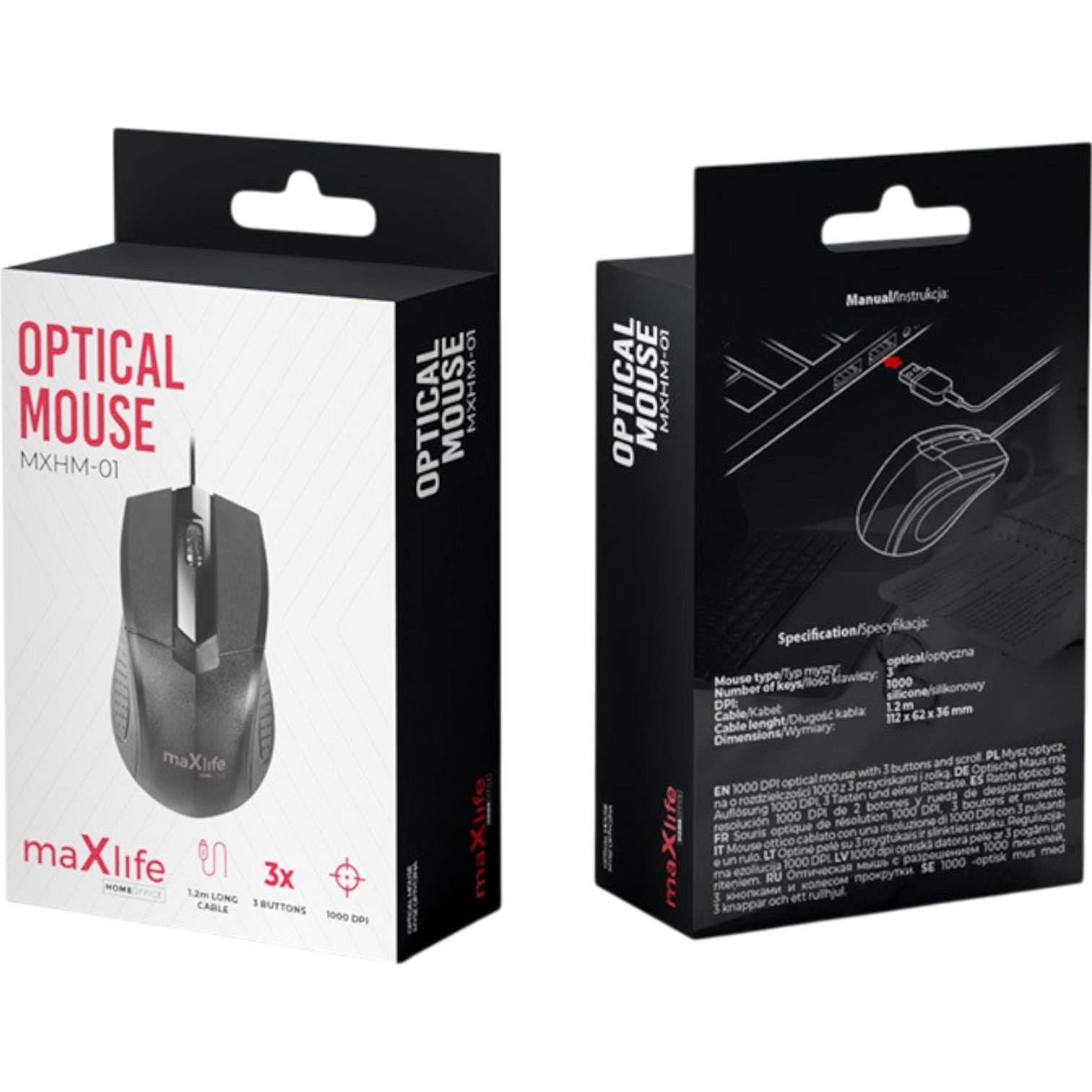 Die optische Maus MXHM-01 Maxlife ist eine Büromaus mit einer Empfindlichkeit von 1000 DPI. Die Arbeit wird durch ein 120 cm langes Silikon-USB-Kabel erleichtert. Die Maus verfügt über 3 Tasten, darunter ein präzises Scrollen.