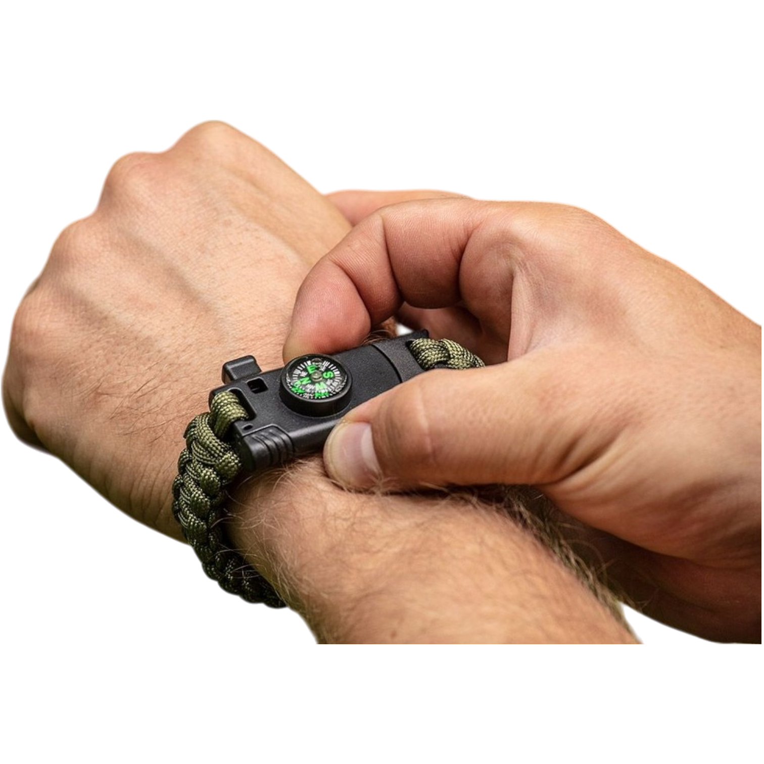 Survival Überlebens Armband Pfeife Kompass Feuerstein Seil Klinge grün Prepper