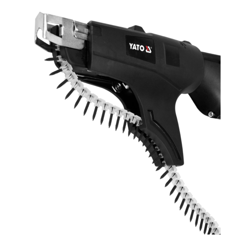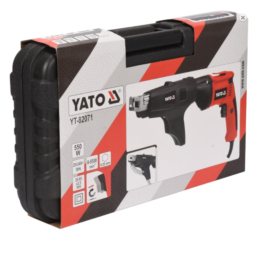 Der YATO YT‑82071 ist ein 550‑W‑Gipskartonschraubendreher mit Magazin, entwickelt für effiziente Trockenbauarbeiten. Er verarbeitet Standardschrauben mit einer Länge von 22–55 mm und ermöglicht durch sein Schraubenvorschubband und bis zu 5500 U/min eine deutliche Zeitersparnis beim Verschrauben von Gipskartonplatten.