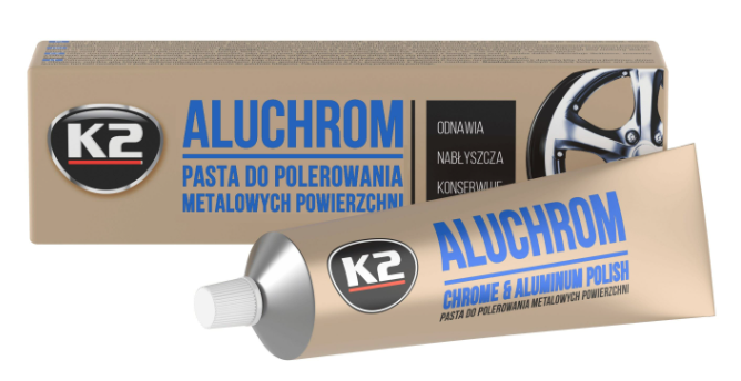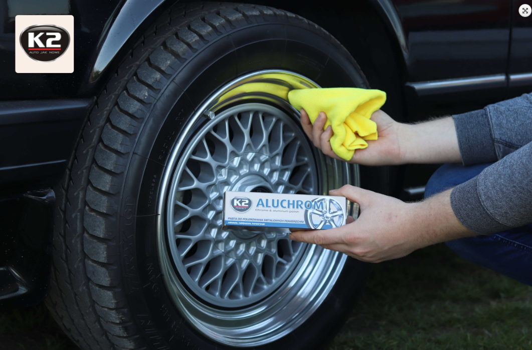 Anwendung: Die Felgen müssen zu Beginn z.B. mit K2 Felgen Felix Felgenreiniger gereinigt und getrocknet werden. K2 Aluchrom wird auf die Felge aufgetragen und mit einem Tuch verrieben. Der Überschuss wird abgewischt und mit einem sauberen Mikrofasertuch poliert. Bei stark verbrauchter Oberfläche die Prozedur wiederholen.
