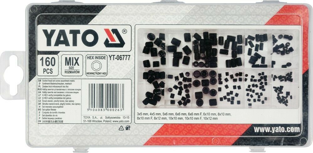 Yato YT-06777 Maden-Schrauben 160 teilig Gewindestifte Sortiment Set Sechskant