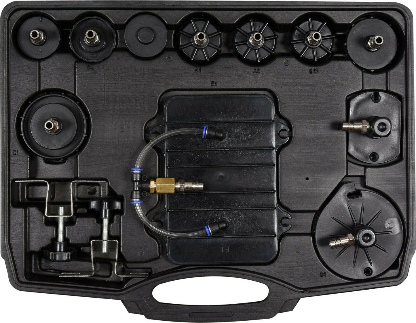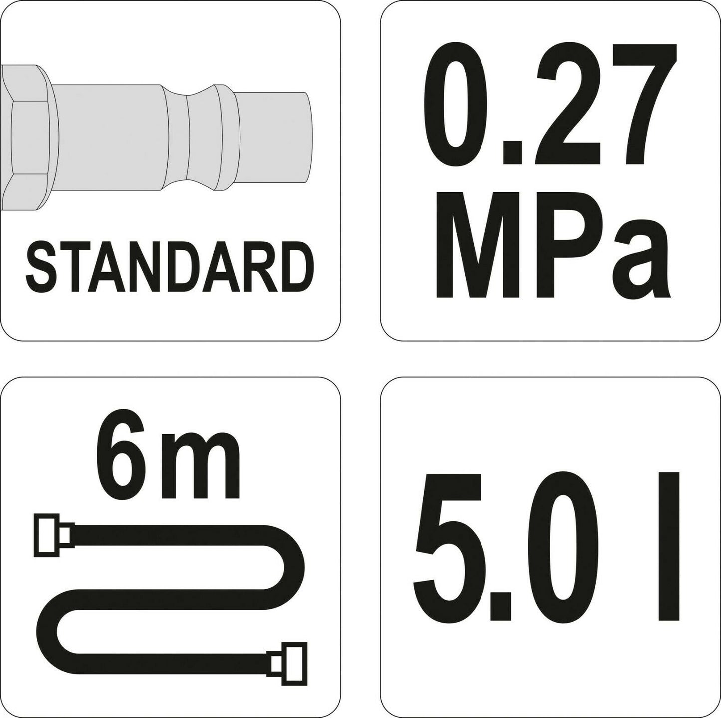 die Fähigkeit, die Flüssigkeit in wenigen Minuten von einer Person zu wechseln, ohne dass die Gefahr von Lufteinschlüssen im System bestehtspezieller Hochdrucktank mit einem Fassungsvermögen von 5 l ermöglichen ein früheres Befüllen mit Druckluft, wodurch das Gerät ohne ständige Stromversorgung arbeiten kann6 m KabelDas Set enthält Stecker für die beliebtesten Automarken